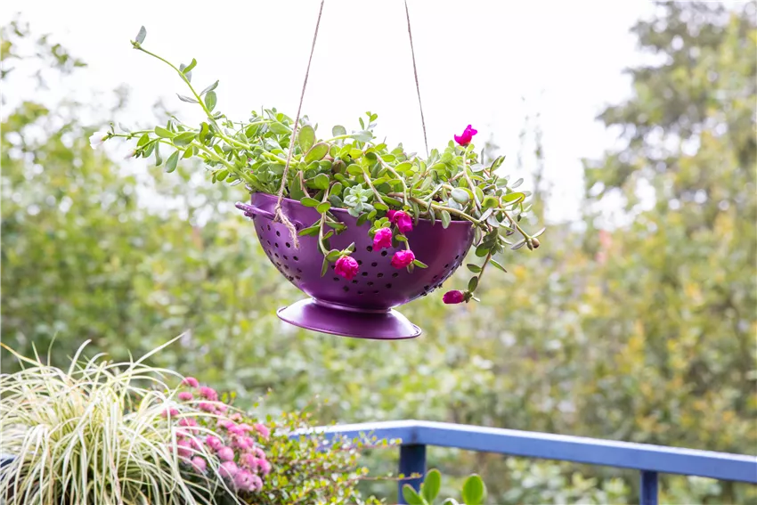 Mit Pflanzen kann man die schönsten DIY Ideen für den Balkon realisieren. Denn man muss nicht immer neue Dinge kaufen, um den eigenen Balkon schön zu gestalten. Wenn man ein altes Nudelsieb übrighat, kann man daraus eine stylische Blumenampel machen. Wie das geht? Je nach Geschmack kann man das Sieb direkt bepflanzen oder es vorher in der Lieblingsfarbe anmalen oder ansprühen. Aufhängen kann man das bepflanzte Sieb dann mit einer Schnur, einem Seil oder einer Metallkette. Wichtig ist dran zu denken, dass das Sieb Löcher hat, durch das überschüssiges Wasser abfließen wird. Daher sollte man die Apel nicht über einer Sitzgelegenheit platzieren. Weitere DIY Ideen für den Balkon mit Pflanzen sind kleine Naschgärten, die man sich einfach aus alten Holzkisten bauen kann. Dafür einfach die Holzkisten mit Folie auslegen und ein paar Löcher als Abzug in die Folie stechen. Dann kann die Kiste mit Erde befüllt und bepflanzt werden. Das Praktische daran: Man kann die Kisten an den Kanten übereinander stapeln und sich damit einen kleinen vertikalen Garten auf dem Balkon basteln. Oder wie wäre es mit alten Konservendosen als Pflanzgefäß? Die Dosen können ebenfalls angemalt oder angesprüht werden und sehen dann richtig hübsch aus.