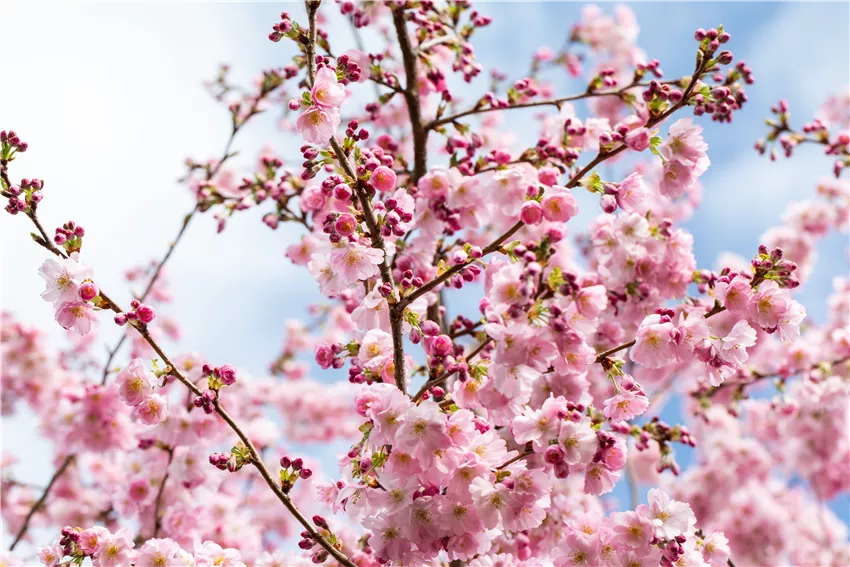 Eigentlich muss man allein schon beim Anblick gar nicht mehr lange darüber nachdenken, ob man eine Zierkirsche im eigenen Garten pflanzen sollte. Denn die rosa und pinken Blüten machen gute Laune und sorgen im Frühjahr für die ersten Frühlingsgefühle. Kein Wunder, dass dieser Kandidat eines der beliebtesten frühblühenden Gehölze in unseren Gärten ist. Auch in Parkanlagen und an öffentlichen Plätzen werden die Gehölze gerne gepflanzt, denn egal wo sie stehen, sie sind immer ein Blickfang. Und nicht nur das, die hübschen Blüten ziehen auch Insekten wie Bienen und Hummeln an. Die tummeln sich im Frühjahr an den Blüten, ernähren sich und tanken damit Kraft für die neue Saison. Besonders unter den bienenfreundlichen Gehölzen ist die Zierkirsche also sehr beliebt. Und wer jetzt denkt: Für so einen Baum habe ich doch gar nicht genug Platz – der hat sich getäuscht. Denn unter den verschiedenen Arten und Sorten findet man die unterschiedlichsten Wuchsformen und -größen. Vom kleinen Strauch bis hin zum stattlichen Baum: Da ist wirklich für jeden Geschmack und jede Gartengrößte die passende Zierkirsche dabei. Auch für den Balkon findet sich das passende Exemplar.